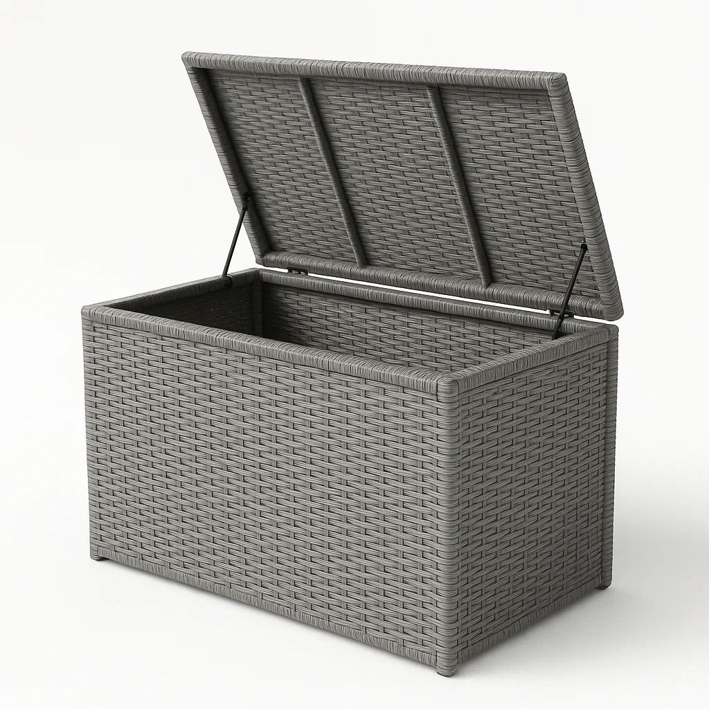 Baúl de almacenamiento de resina trenzada gris 117x45x57 cm