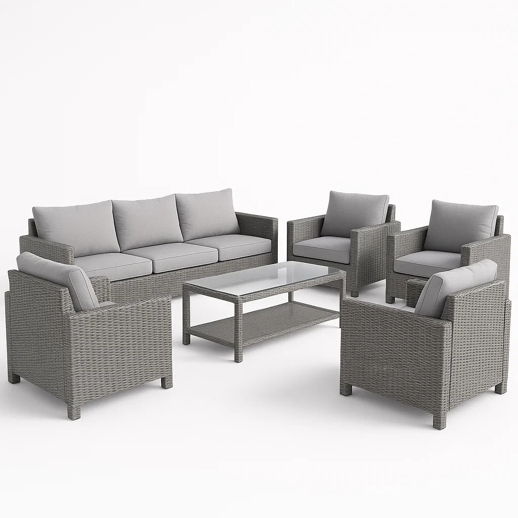Conjunto de sofá de exterior de ratán sintético gris con cojines