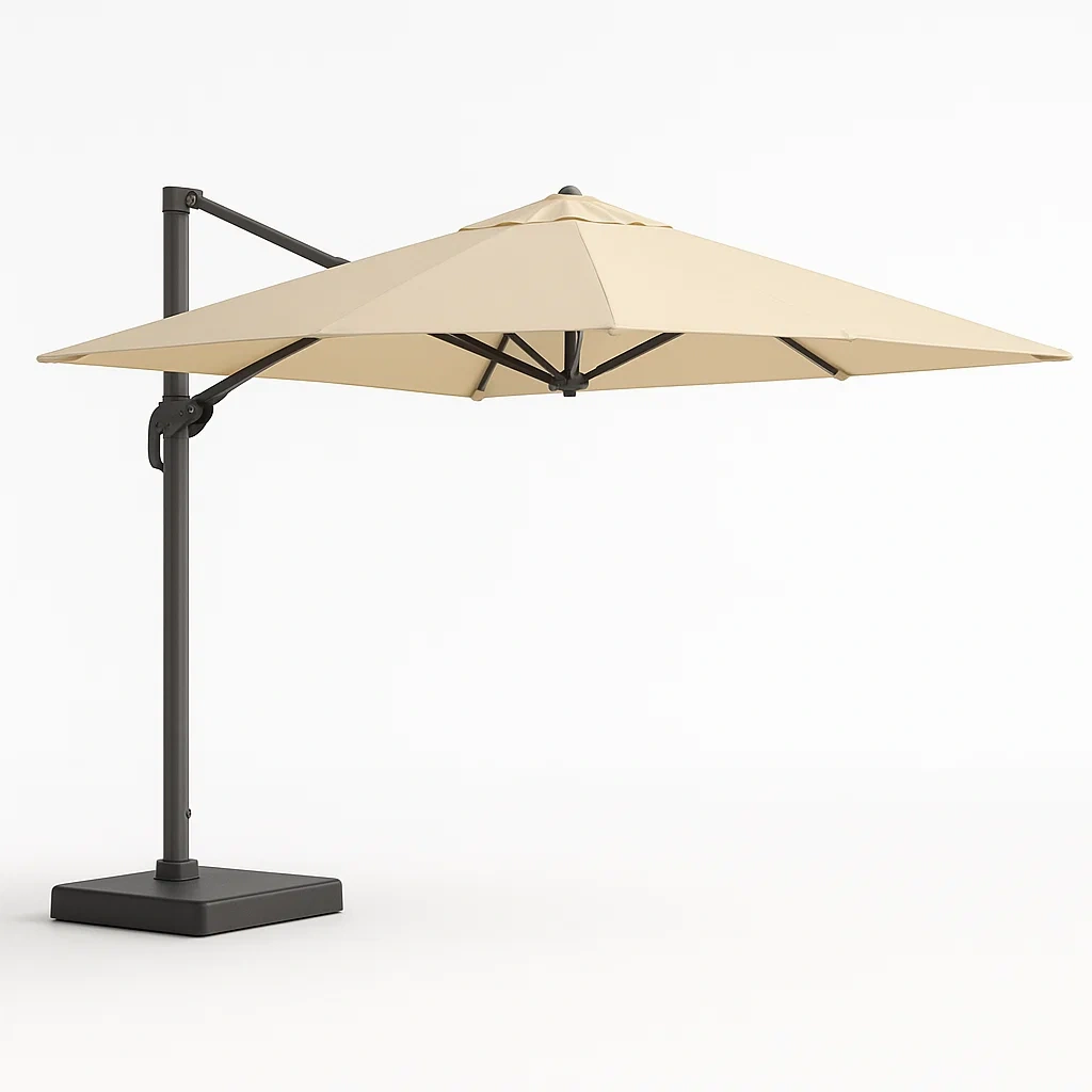 Este parasol de jardín cuenta con una estructura de aluminio robusto con recubrimiento en polvo y una tela de poliéster resistente al agua y a los rayos UV. Sus dimensiones incluyen un diámetro de sombrilla de 300 cm y una altura total de 250 cm. La base es cuadrada, midiendo 100x100 cm, lo que garantiza estabilidad. El parasol es ajustable para mayor comodidad. Para el autoensamblaje, se necesita una llave inglesa. El paquete incluye un parasol y tiene unas dimensiones de 310x40x20 cm con un peso de 28 kg.