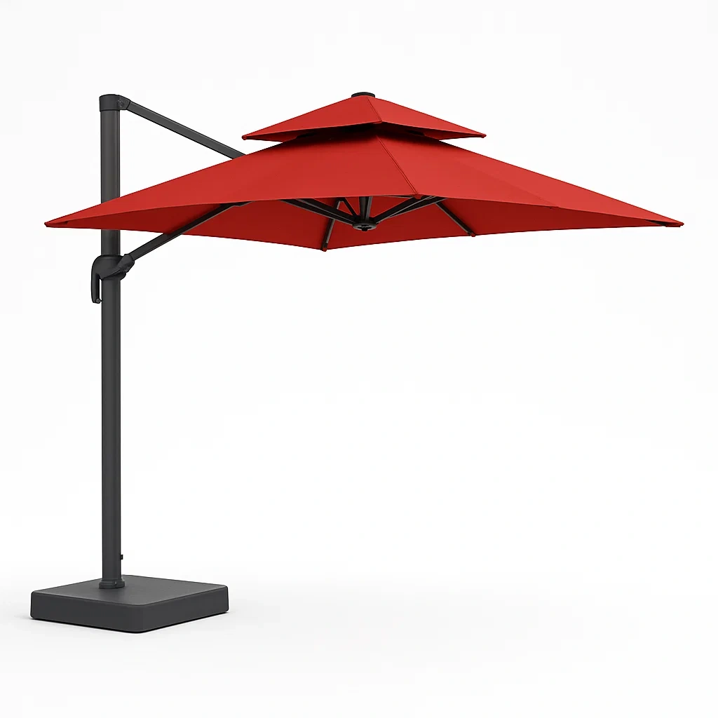 Parasol colgante de estructura de aluminio con una tela de poliéster resistente al agua y a los rayos UV.